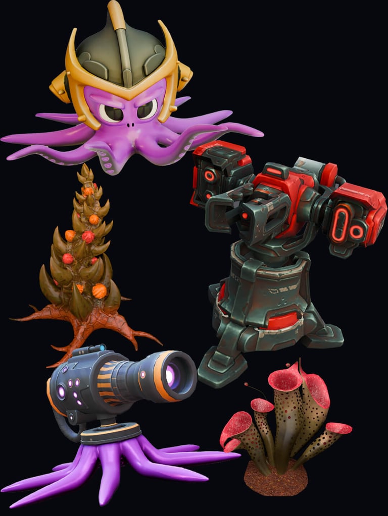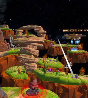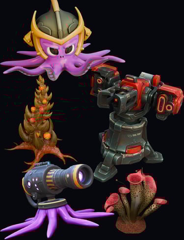 The Toxic Isles were once a tranquil paradise. Now, alien spores choke the land, twisting plant life into something monstrous. From the cockpit of your Dropship, you are the last line of defense — soaring through poisoned skies, dodging erupting volcanoes and treacherous terrain, as you purge the corruption and drive the invaders back into the void.